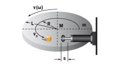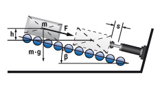 | W1 = m · g · h W2 = 0 W3 = W1 + W2 W4 = W3 · x vD = √2 · g · h · (R / L) me = (2 · W3) / vD2 tan α = s / R | m = 50 kg W1 = 50 · 9,81 · 1 = 490,5 Nm | |